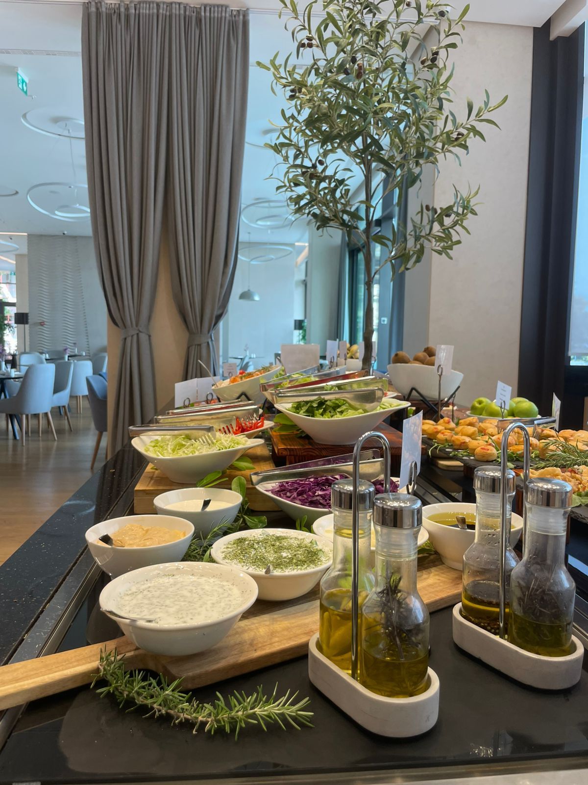 Nudi izvanredan kulinarski doživljaj koji se bazira na nacionalnim specijalitetima, pripremljenim francuskim tehnikama obrade hrane. Sa idiličnim pogledom koji se pruža sa terase, pravo je mjesto za opuštanje, zamišljen kao ambijentalni vrt i oaza mira, udobnosti i kreiranja novih uspomena. Autentičan koncept, pažljivo odabrana jela u kombinaciji sa lokalnom kuhinjom i izborom kvalitetnih vina zadovoljiće i najprobirljivije goste. U čarobnom pogledu na morsko plavetnilo naši gosti će uživati u svakom zalogaju.